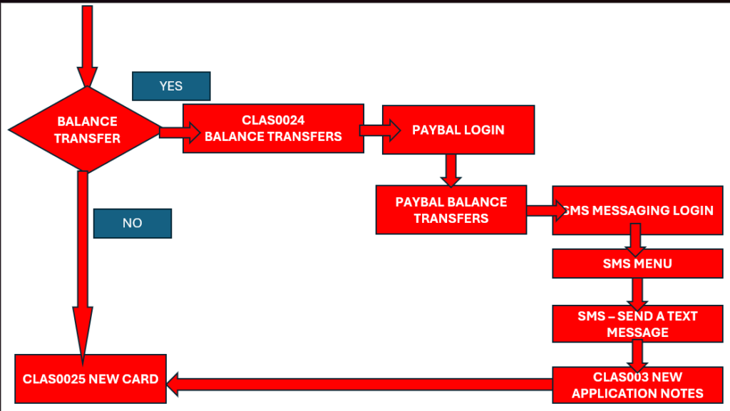 The user will need to go to the CLAS Credit Application System, screen which details if a Balance Transfer is applicable to obtain the Card Details.